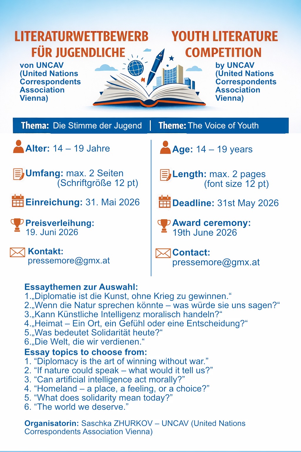 pictures Top News UNCAV – JUGENDLITERATURPREIS 2026 Ausschreibung für junge literarische Talente März 5, 2026März 7, 2026 mansour